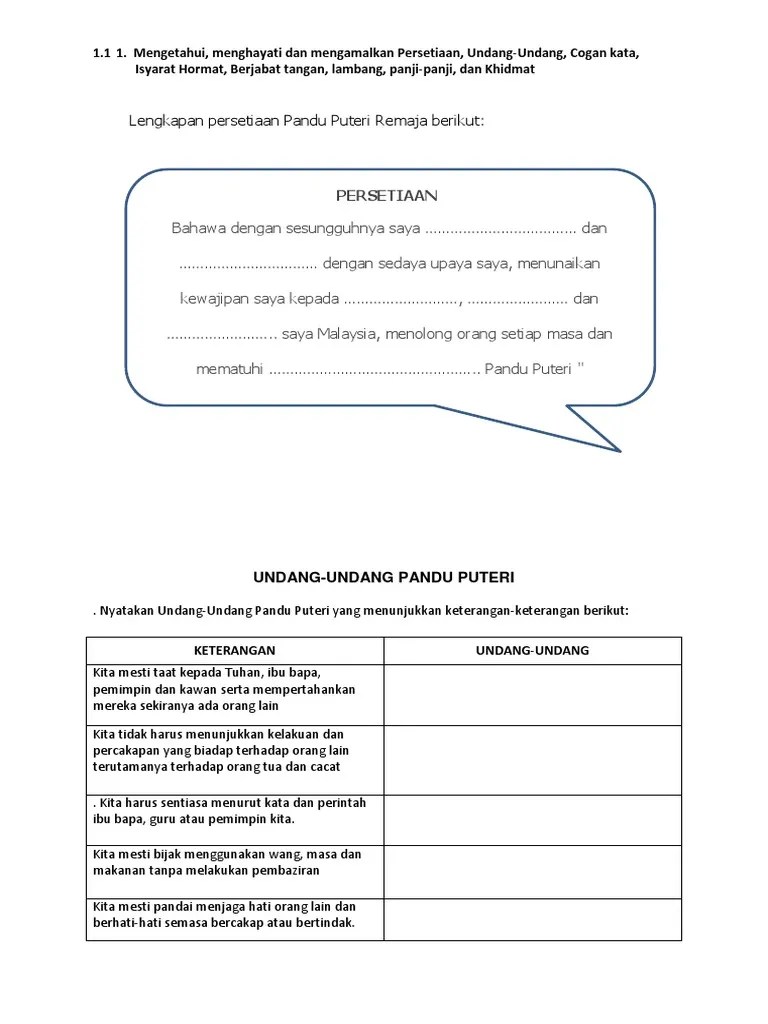 Keterangan Undang-Undang Pandu Puteri : Dasar Pertubuhan Dan Undang Undang Pandu Puteri Tunas